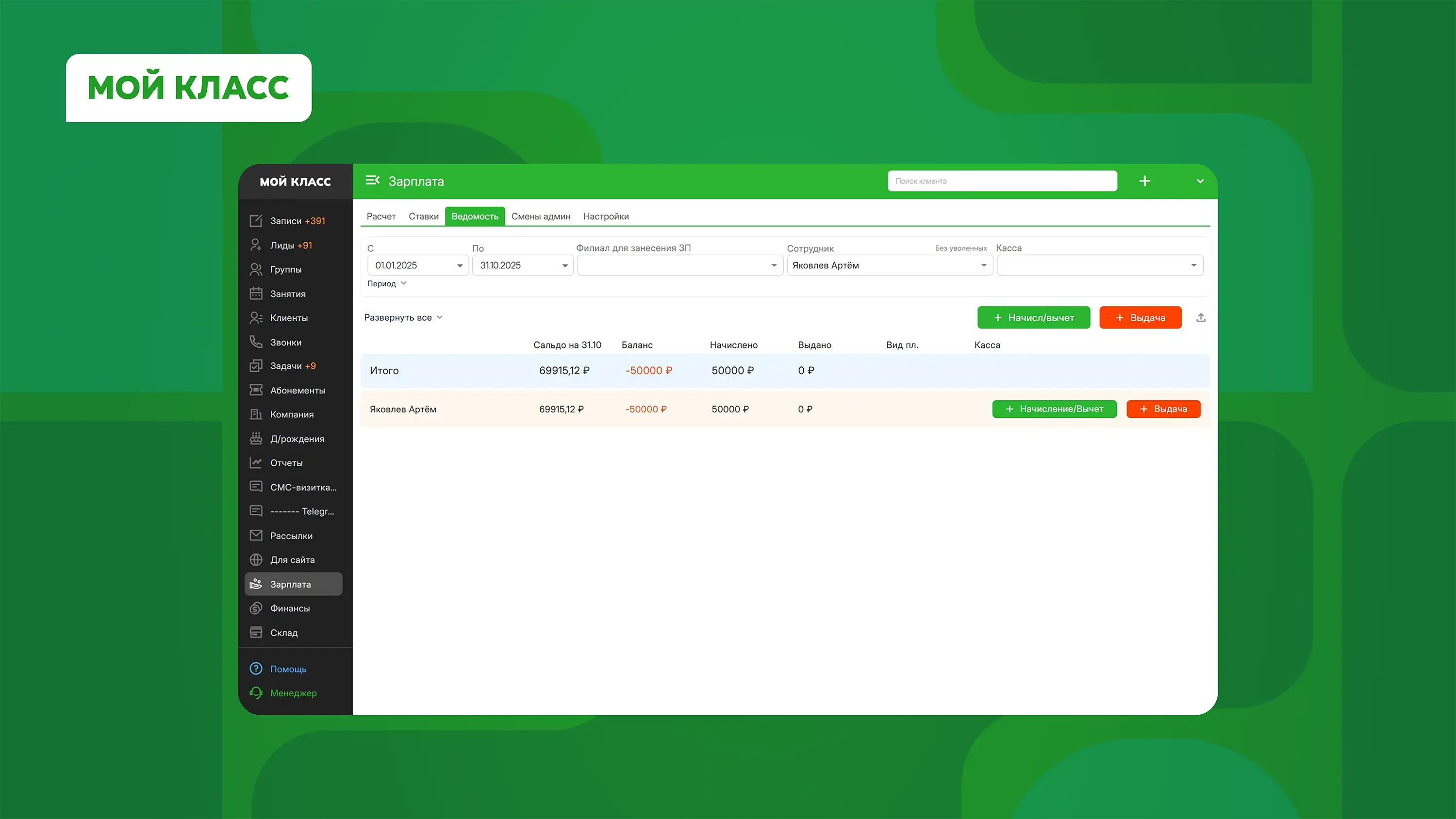 В ведомости отображался только баланс за текущий месяц. Чтобы понять общий итог по сотруднику с начала работы, приходилось считать вручную или сверяться с несколькими периодами.