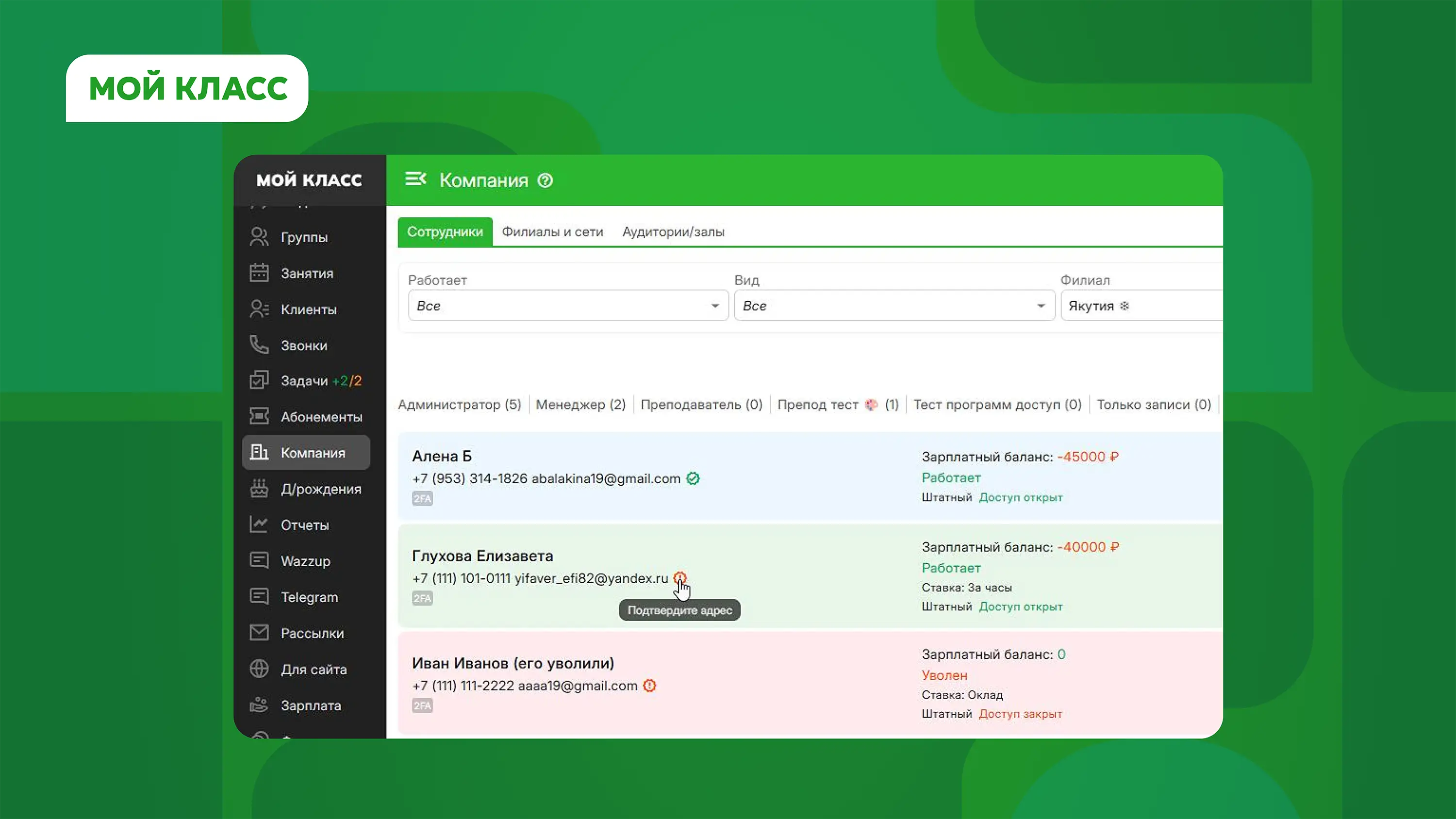 В CRM «Мой Класс» добавлена верификация электронной почты сотрудников.