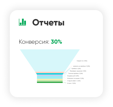 Мой Класс предоставляет виджеты онлайн-записи и интеграции с сайтом, рекламными формами и другими каналами привлечения. Все заявки автоматически попадают в систему и распределяются по воронке продаж.